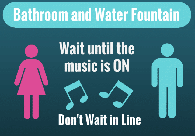 Bathroom and water fountain posters are above the water fountain and on the bathroom doors. These give students a reminder of when they can use the restroom and water.